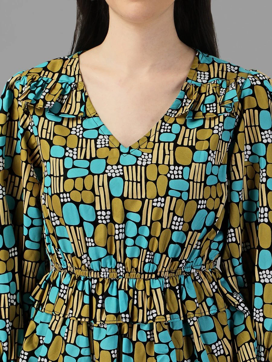 DRESSES FOR WOMEN WESTERN WEAR DOTTED MULTI-COLOR DRESS.