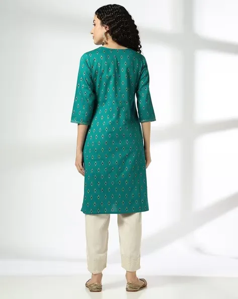 Women Ikat Print Straight Kurta