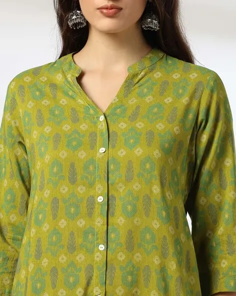 Women Geometric Print Straight Kurta with Insert Pocket