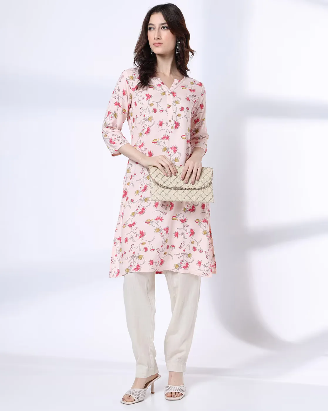 Women Lotus Floral Jaal Print Straight Kurta